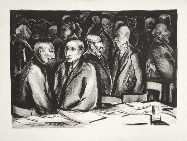 City Council Meeting (Chicago Municipal Government, Regime of Mayor Richard Joseph Daley) by Rudolph Pen | Original Lithograph | c. 1960 - 1970 | Bearing the estate stamp -- “Estate of Rudolph Pen: Original Print” -- on the verso. |